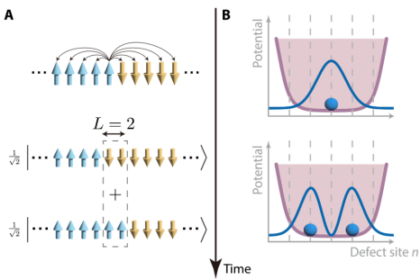 In this work, researchers prepared an initial single-spin-kink state on a one-dimensional chain of 20 ions through individual addressing of each ion qubit. Researchers then used a transverse-field Ising model with long-range interactions to realize a smooth effective potential field for the spin kink, observing the spin kink splitting into a superposition state at different locations during the dynamic evolution due to the quantum interference.