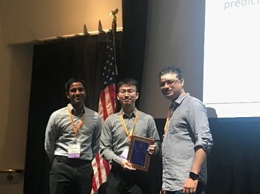 Prof. Aditya Akella (left), Co-Chair of ACM SIGMETRICS 2018 Program Committee, and Prof. Vishal Misra (right), Chair of ACM SIGMETRICS, presented the award to Prof. Longbo Huang.