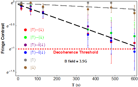, the coherence time is 4,740 ± 1,760 s and for the other four initial states, the coherence time is 667 ± 17 s.