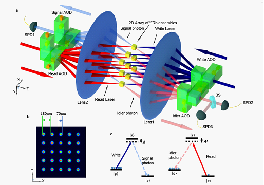 Through heralded detection of photon interference, Prof. Duan’s group generated multipartite entanglement between 25 individually addressable quantum interfaces in a multiplexed atomic quantum memory array and confirmed genuine 22-partite entanglement. This experimental entanglement of a record-high number of individually addressable quantum interfaces makes an important step toward the realization of quantum networks, long-distance quantum communication, and multipartite quantum information processing. The paper was accepted with strong recommendations from the referees: “This is a record-high number and an important milestone for the engineering of the first quantum networks.” by one referee and “The experiment reported here defines the state-of-the-art in the complexity of atomic-photonic interfaces, and I believe this result will have a significant impact in the quantum information science community.” by the other referee.