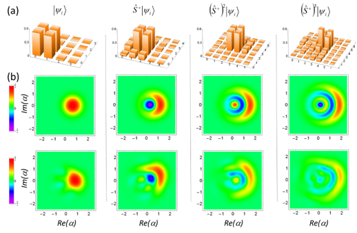 Figure 2 The experimental results for the phonon additions. (a) Additions on a superposition state