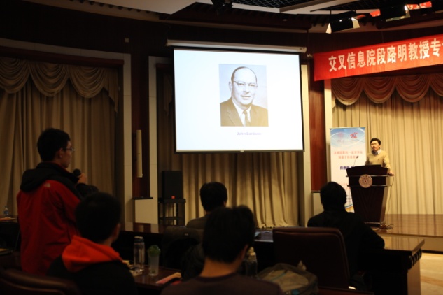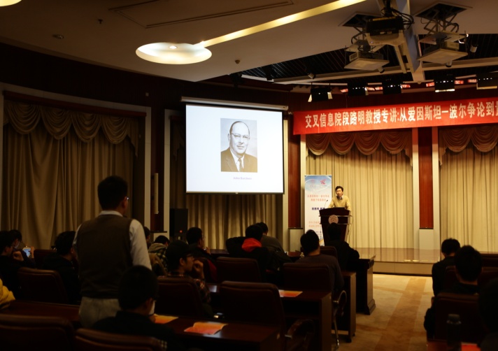 (By Shuai Sun) February 27, Prof. Luming Duan spoke on the topic “From Einstein-Bohr Debate to the Frontier of Quantum Information” in FIT Lecture Hall, attracting over 100 students from Tsinghua University, Peking University, Beihang University, Beijing Institute of Technology and so on.