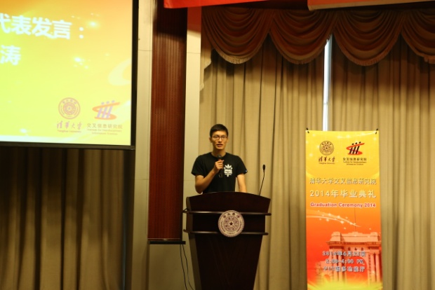 (By Shuai Sun) IIIS Commencement Ceremony and Yaoclass Meeting 2014 took place at Lecture Hall, FIT Building, on the afternoon of June 23, with the presence of Prof. Andrew Chi-Chih Yao, Dean of IIIS, Prof. Li Zheng, Director of Academic Affairs Office, Tsinghua University, and Wenxue Zhang, Vice Director of Academic Affairs Office. IIIS faculty, all the graduates and some of the student parents also attended the ceremony.