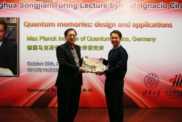 On the afternoon of Oct. 25, 2012, Tsinghua Songjian Turing Lecture 2012 took place in the Lecture Hall, FIT Building, with Prof. Ignacio Cirac, Max Planck Institute of Quantum Optics, Germany, lecturing on Quantum memories: design and applications. The talk was hosted by IIIS Dean Prof. Andrew Chi-Chih Yao.
