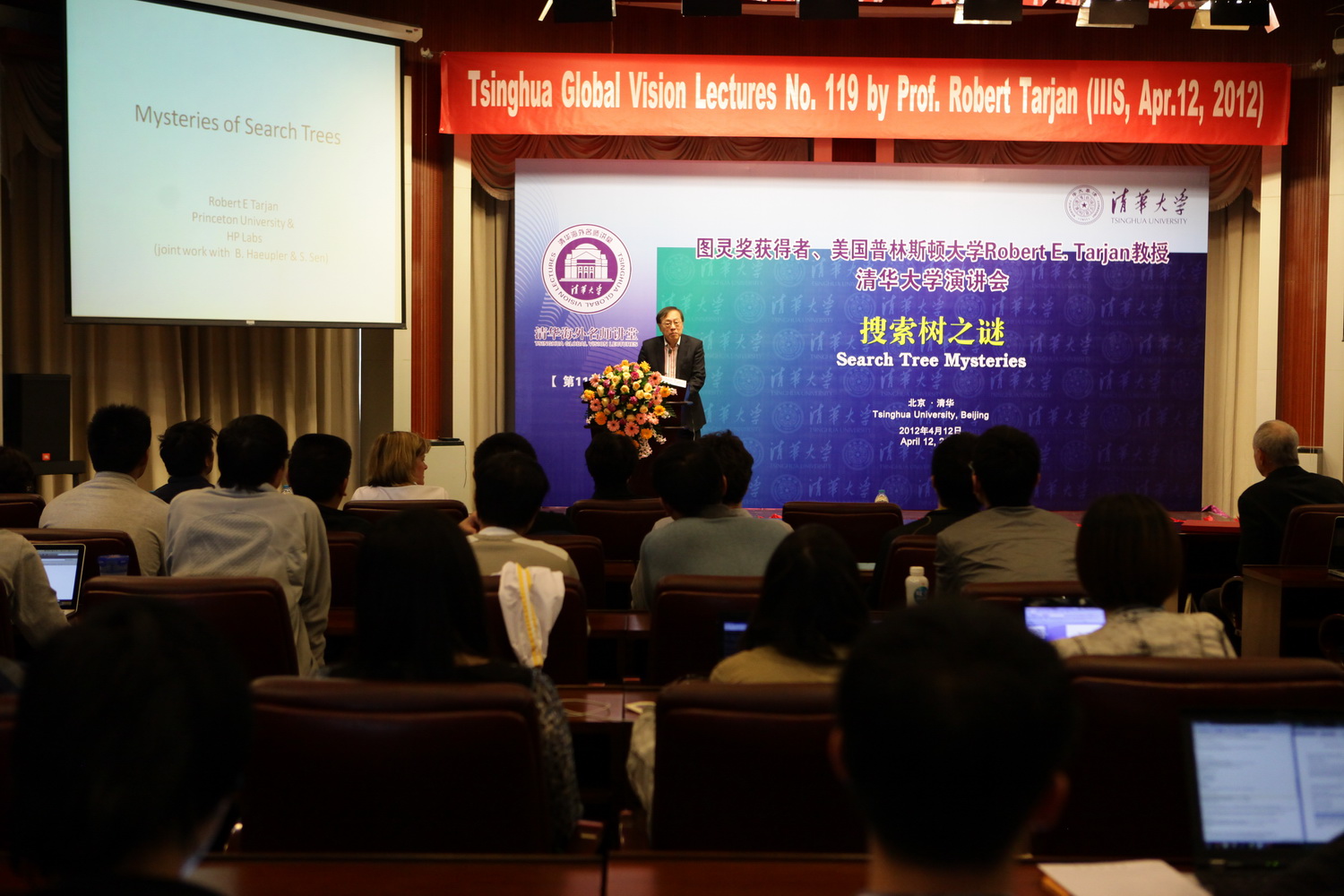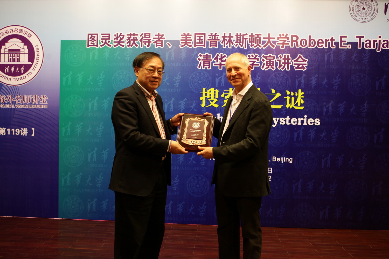 Prof. Tarjan speaks at the “Tsinghua Global Vision Lectures”.