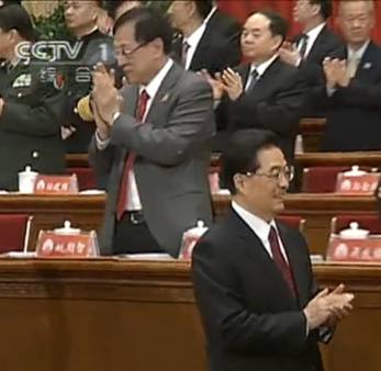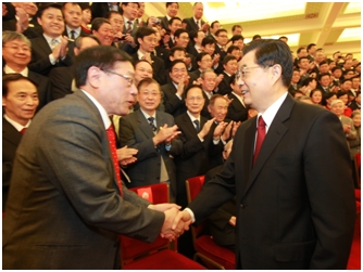 Chinese President Hu Jintao shakes hand with Prof. Yao before the Ceremony.