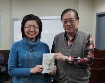Prof. Yao gives a birthday card to Xuelu Yu from Grade 2010 at the lunch meeting.