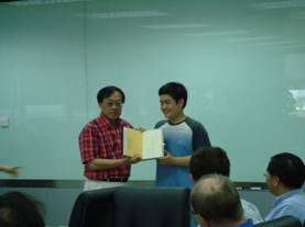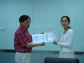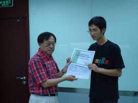ITCS pays much attention to the graduated students and the undergraduate students studying in ITCS as well. The students are presented with different awards according to their outstanding academic results. Jing Zhang, Jie Yin and Yongxi Cheng get "Achievement Awards" and Bangsheng Tang, Hongyu Liang, Chengu Wang, Youming Qiao and Tiancheng Lou obtain "Undergraduate Achievement Award" for their outstanding senior thesis.