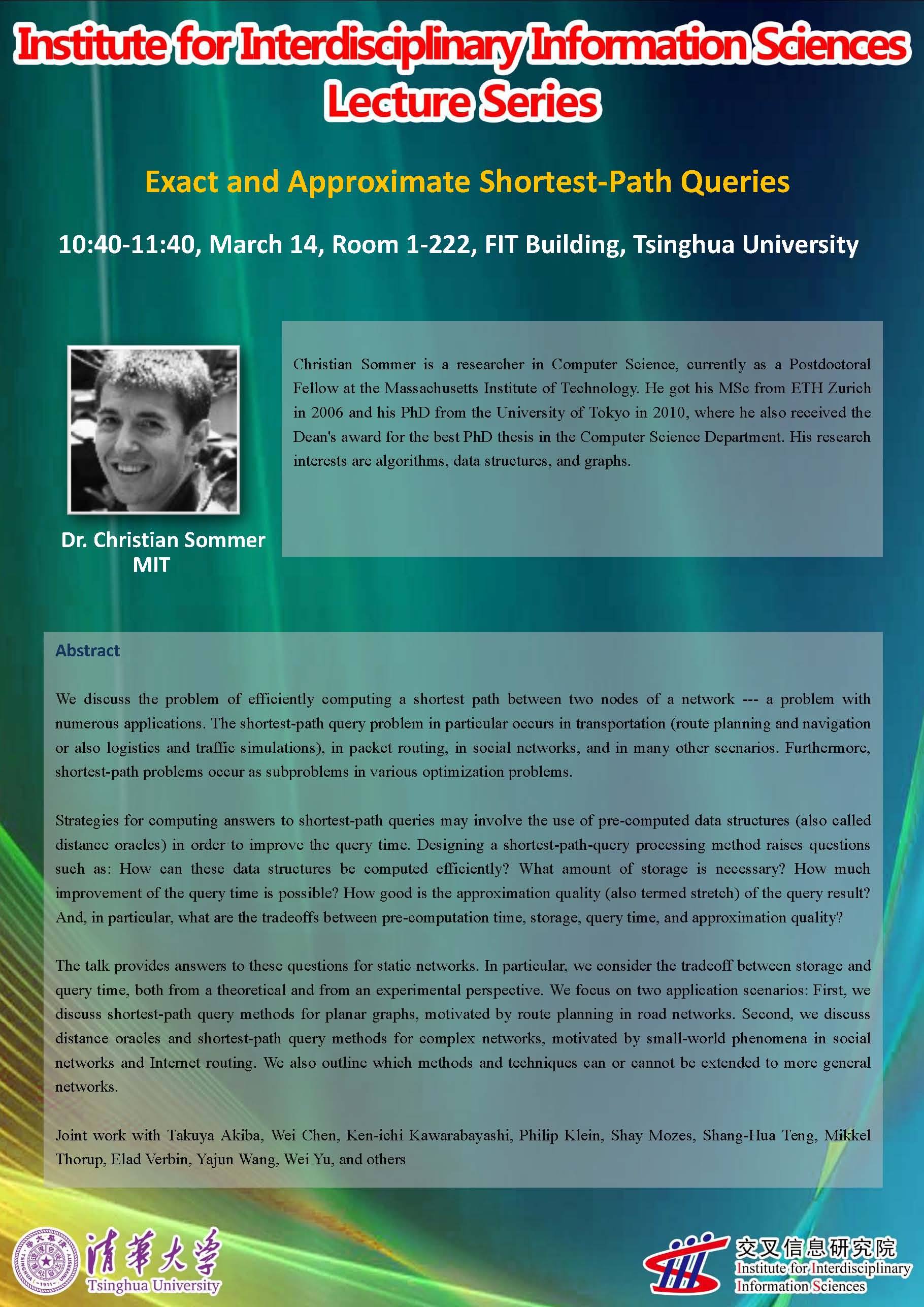 Christian Sommer is a researcher in Computer Science, currently as a Postdoctoral Fellow at the Massachusetts Institute of Technology. He got his MSc from ETH Zurich in 2006 and his PhD from the University of Tokyo in 2010, where he also received the Dean's award for the best PhD thesis in the Computer Science Department. His research interests are algorithms, data structures, and graphs.