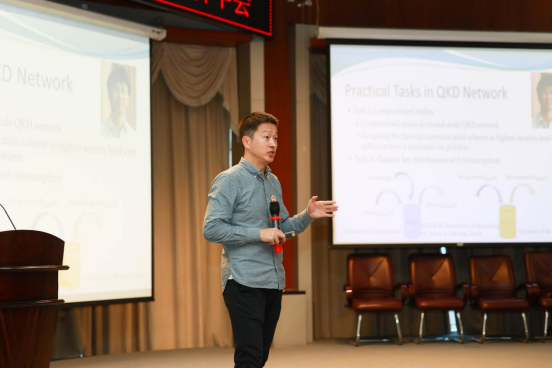 交叉信息院教授马雄峰以“量子密码通信的前沿进展”为题,阐述了量子秘钥分发网络的实际应用,如城市量子网络,京沪干线,墨子号量子卫星等,并介绍了世界主要国家的相关进展。现场师生就量子秘钥分发和量子计算机等问题与马雄峰教授展开了热烈的交流和讨论。