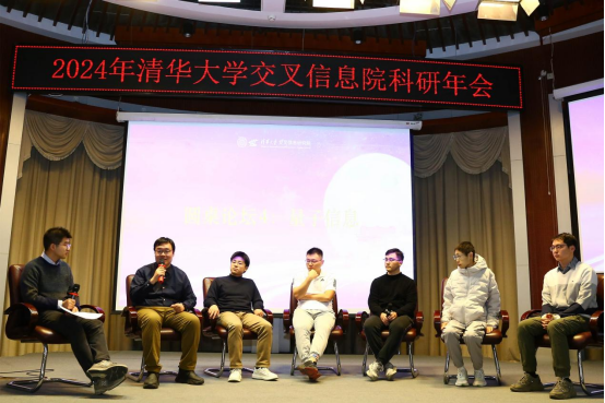 机器学习与人工智能圆桌论坛由贺天行助理教授主持,围绕大模型记忆力和推理能力、大模型创造力、人工智能完全代替人工需要满足哪些条件等话题进行探讨。腾讯混元多模态算法中心负责人彭厚文指出,大模型未来发展在深度上应聚焦解决复杂问题的能力,在广度上应聚焦多模态的应用能力。字节跳动大模型团队研究员黄文灏分享了关于解耦大模型记忆和推理能力的思考。交叉信息院研究生代表杨景钦、陈禹、刘昀参与交流。