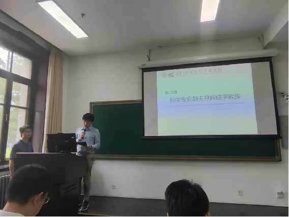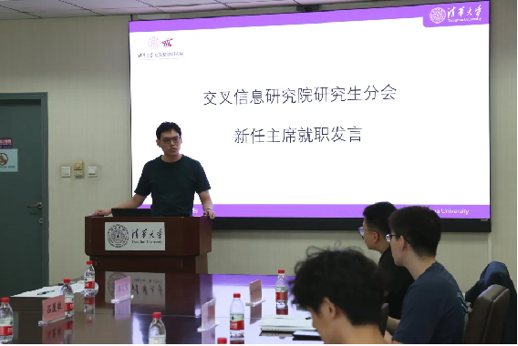 校研究生会主席团成员王紫辰首先致辞。他充分肯定了交叉信息院研分会在过去一年中取得的丰硕成果,包括第一届学生节CháGPT、第733期博士生学术论坛、“廿廿不忘”校庆主题纪念展、“IIIS Tea Time”学术茶话会等。他祝愿新一届研究生分会能够传承往届优秀的工作传统和工作方法,在服务同学的过程中展现新的活力,取得更优异的成绩。
