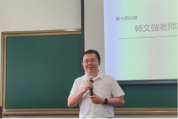 随后,计算机系党委副书记韩文弢老师对大会进行了总结,充分肯定了以毛嘉怡为代表的第十二届交叉信息院研究生分会所做出的贡献,并祝贺许融武当选新一届叉院研究生分会主席。韩老师作为交叉信息院第一届校友,对交叉信息院的研究生工作始终保有极高的关注与支持,对过去一年交叉信息院研会取得的丰硕成果表示由衷的祝贺与欣慰。他希望交叉信息院研分会能继续做好各项工作,建设成为一个富有责任感和使命感的优秀学生组织,也期待交叉信息院研分会能够与包括计算机系研分会在内的全校各院系各个学生组织间开展更广泛的交流合作。