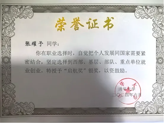 交叉信息院2024届博士毕业生张耀予荣获2024清华大学毕业生“启航奖”银奖。他将在毕业后加入华为鸿蒙操作系统部门工作。