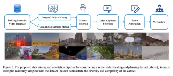 数据挖掘和标注方面,研究组首先从海量自动驾驶数据中挖掘长尾目标并收集挑战性场景样本数据,随后选择每个场景的关键帧并进行相应场景的信息标注。