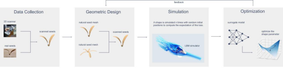 在全球人工智能驱动的科学研究(AI for Science)极速发展的背景下,人工智能技术与植物学、生态学等领域深度交叉融合,拓展着科学探索的边界。近期,杜韬研究组基于人工智能与生物仿生技术,构建了一套能够自动进行翅果形态设计、飞行仿真、性能优化的计算仿生学流程,为人造翅果的形态和性能探索提供了新方案。