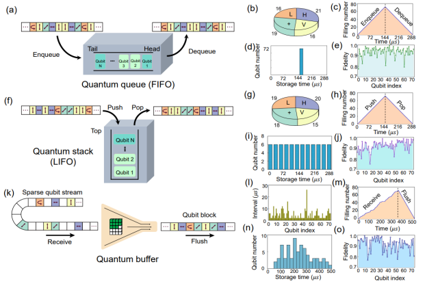 此外,本工作也展示了几种在经典信息处理中的数据结构在量子系统中的实现。分别实现了量子队列,量子堆栈,和量子缓存器。这些实现对于拓展量子存储的工具库以及对未来更大规模和更加复杂的量子体系,例如量子操作系统的实现有帮助。