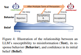 | 可被视为被误导之前的过渡阶段。大模型缺乏明确的答案,包括回答“不知道”等,体现了缺乏信心,使其更容易被虚假信息说服。