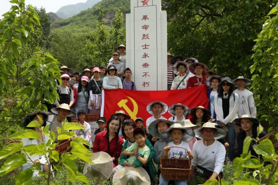 这座名为“金银坡”的茶山采用独特的“黄芩与果树共生的林下立体套种”模式,使原本土地贫瘠的荒山遍布山杏、玫瑰、果桑、连翘、黄芩等经济作物,充分展现着劳动者的智慧。在当地人的带领下,师生们沿着山路,辨识各类山野植物。