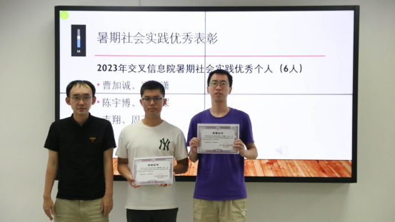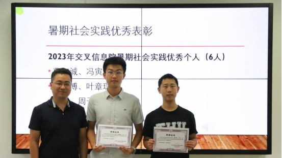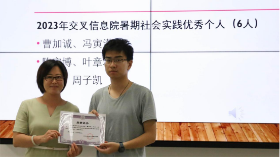 颁奖环节,交叉信息院向六位暑期实践优秀个人颁发奖状。获得该奖项的同学包括曹加诚、冯寅潇、陈宇博、叶章琛、吉翔、周子凯。