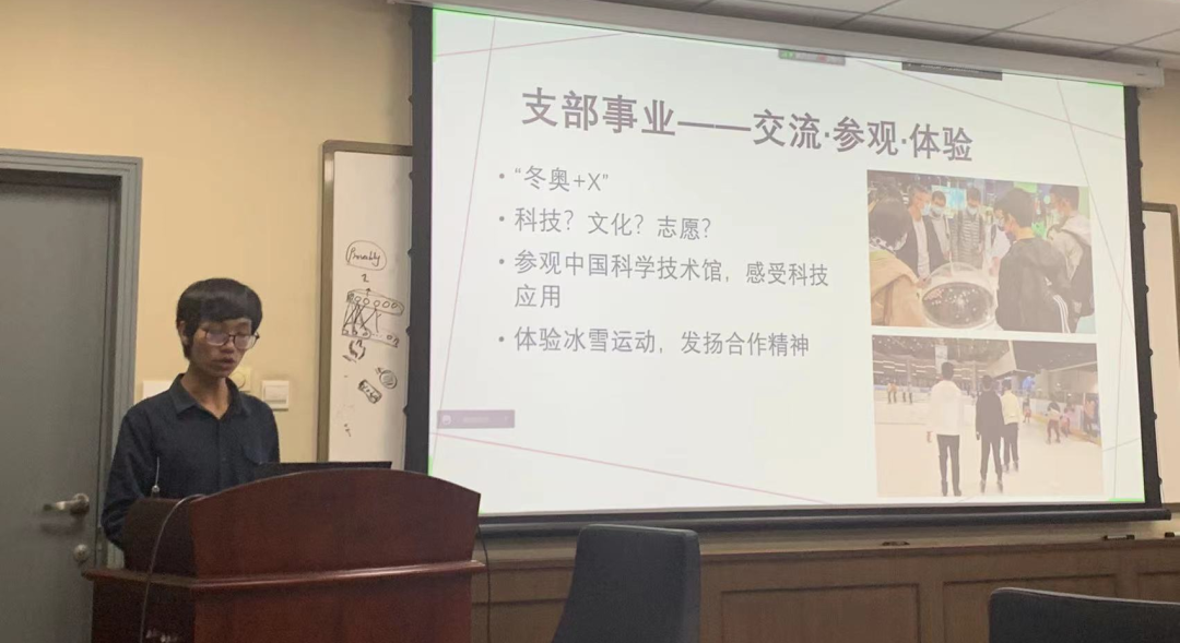 同样是远在海外,智90团支书赵和旭同学介绍了其支部过去一年的建设成果。平时的工作中,智90团支部广泛调研同学们的需求,邀请了多位嘉宾经验分享会,成功吸引了全院上百名同学参与,令大家印象深刻。