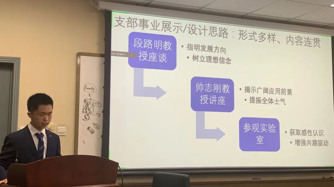 量信10支书温和的展示了“又红又专”、勇担时代大任的支部底色。量信班为服务国家重大战略需求而生,量信10也秉承着这一初心和使命,组织了以“量子”为主题的系列讲座与座谈。