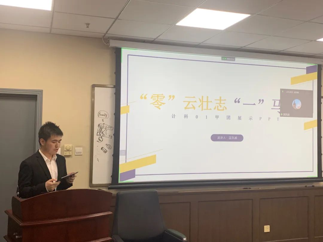 计科02支书吴宇深:“过去一年我们支部有超过一半的同学成为了班委,许多职位都有多名同学共同任职,大家在工作中通力合作,分担压力的同时也激发了大家的积极性和创造力,举办了许多精彩的活动,给我带来了许多惊喜,也让班级成长为了一个更有凝聚力的团体。至于甲团的答辩思路,最初是来自于2019年的招生宣传片《从一到无穷大》,通过同学之间的联系展现出和支部过去一年的建设成果。对于未来工作的展望的话,希望能更好、更深入地调研大家的需求,更有针对性地举行活动。”
