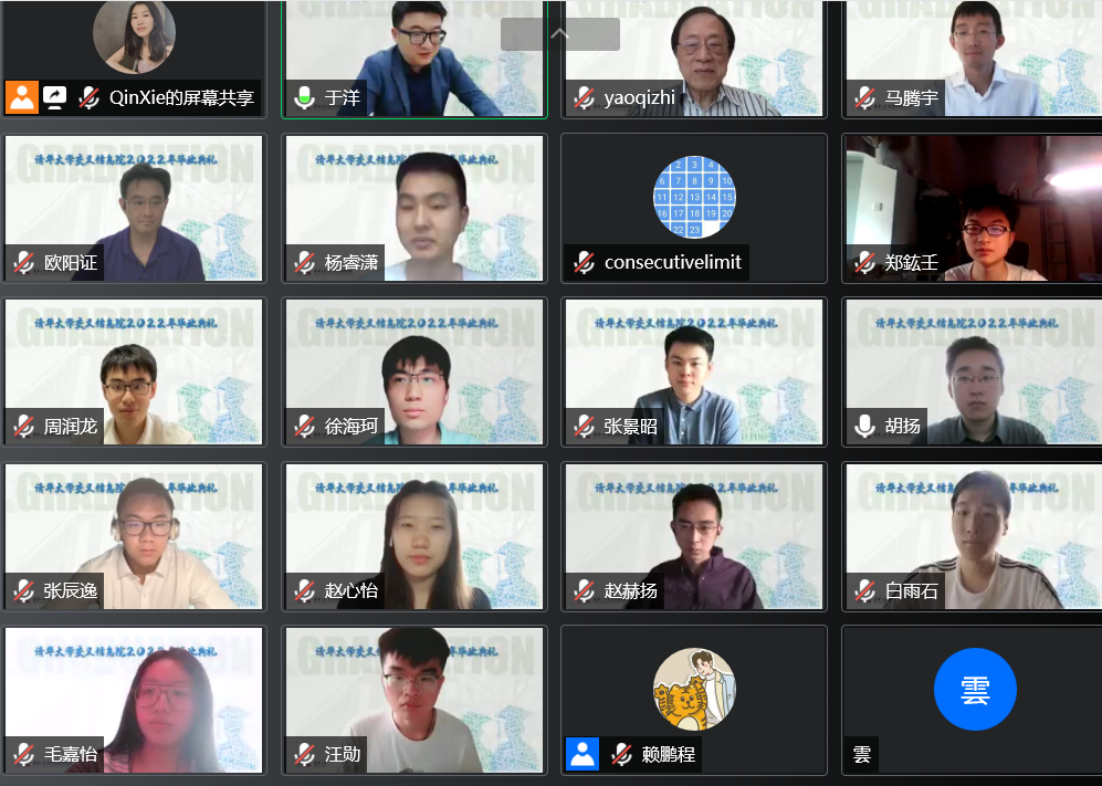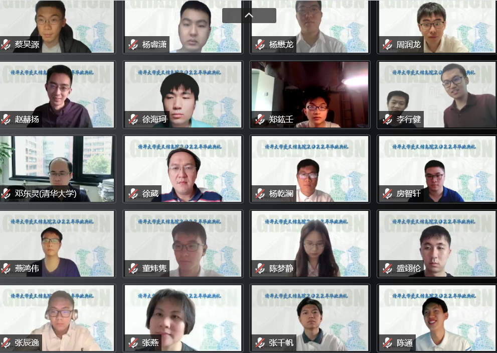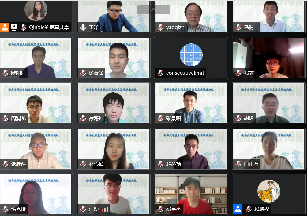 6月19日,清华大学交叉信息院线上举办2022年毕业典礼。清华大学交叉信息院院长姚期智院士,清华大学副教务长、教务处处长、为先书院院长欧阳证教授,2012届姚班校友、斯坦福大学助理教授马腾宇,交叉信息院助理教授张景昭等出席典礼并致辞。本次毕业典礼由计科80班主任于洋助理教授主持,交叉信息院2022届全体毕业生、教师代表及亲友共同在线参加本次典礼。