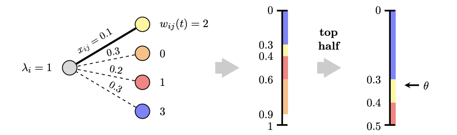 在线匹配的前一半随机采样算法示意图