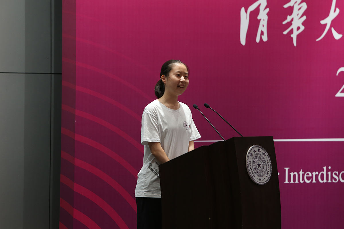 量信10班张水秀南代表全体本科生新生发言,感谢老师和同学们对新生的关怀。张水秀南从自己高中时期印象中交叉信息院的庄严肃穆和进校后所感受到院内师生的热情幽默讲起,分享了自己所体会到的关于交叉信息院的珍贵的平凡。她表示非常幸运能在此踏上量子信息时代的新征程,将不忘初心,勇敢探索,在清华园里修炼成一个大写的人。