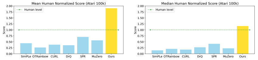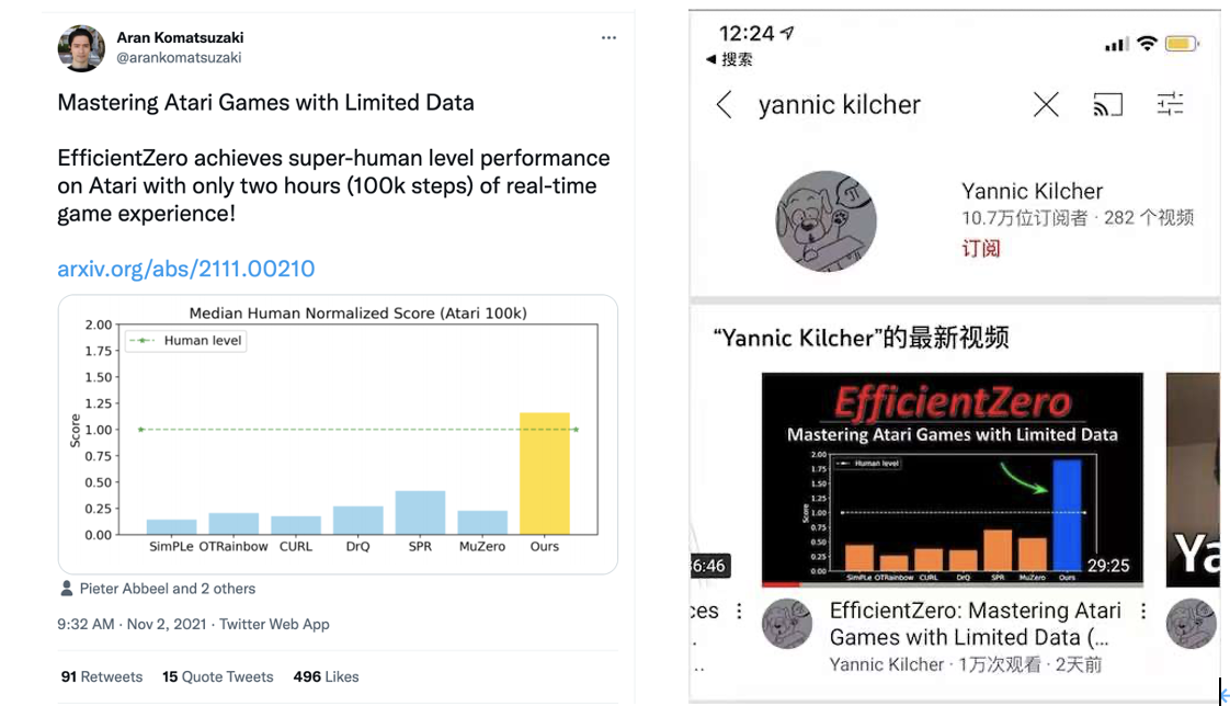 该成果的研究论文《Mastering Atari Games with Limited Data》被2021年神经信息处理系统进展大会(NeurIPS 2021)接收。该论文的第一作者为交叉信息研究院2020级博士生叶葳蕤,通讯作者为高阳助理教授。其他作者包括加美国加州大学伯克利分校教授Pieter Abbeel、交叉信息研究院2020级硕士生刘绍淮以及加州大学伯克利分校博士生Thanard Kurutach。