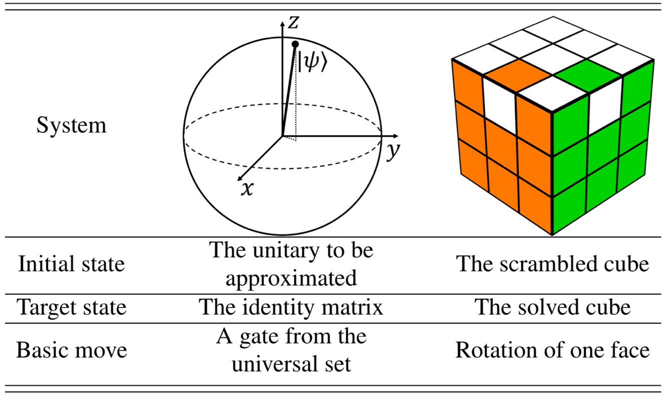 表1: 量子编译问题与魔方还原问题的相似性。