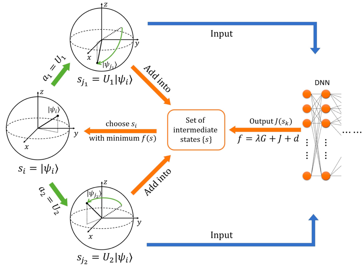 Figure 1: 量子编译的强化机器学习算法。