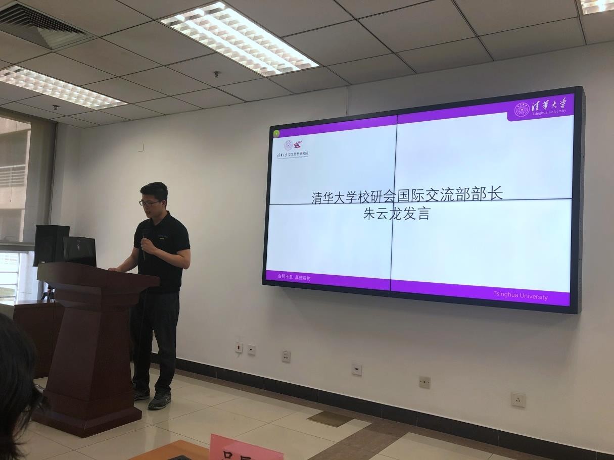 校研究生会国际交流部部长朱云龙作为嘉宾为本次大会致辞,他肯定了交叉信息院研分会在过去的一年里做出的各项工作,特别是在交叉信息院科研年会暨博士生论坛、十周年院庆晚会等活动中的突出贡献,并对本次大会的顺利召开表示祝贺。