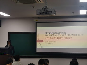 2019年12月22日晚,交叉信息院第六届本科生学生代表大会在清华学堂117教室召开,共有31名姚班学生代表参加大会。计算机系党委学生工作组组长韩文弢、交叉信息院学生生组组长邝仲弘出席此次大会并发言。会上,第五届交叉信息院联席会做工作报告,与会代表选举了新一届联席会主席团成员。