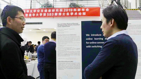 IIIS Research Festival自2015年首次举办以来,已连续传承5届,成为每年底盘点科研成果的热闹盛事。今年,IIIS Research Festival首次与我院博士生学术论坛联合举办。为期一周的年会和博论涵盖特邀报告、海报交流、海报展览及开放组会等环节。此次年会共收录62份学术海报,我院师生对各自的研究领域和科研成果进行了充分展示,内容涵盖量子信息、量子计算、算法设计、分布式系统、机器学习与深度学习、网络科学、机制设计、计算生物学和计算经济学等。24日上午,我院博士生路尧(2019年清华大学研究生特奖得主)、张天翼(2019年研究生国奖得主)、朱广翔(2019年研究生国奖得主)与李斯源(2019年研究生国奖得主)受邀作学术报告,分享自己的科研成果与学术心得。下午,与会师生对海报内容进行了集中交流与积极探讨,现场气氛活跃。