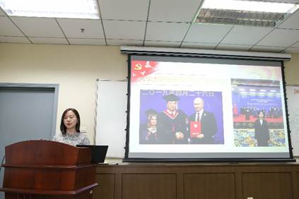研究生党建助管韩玺月分享了现场参加授予普京总统名誉博士学位仪式的见闻和感想。“能参加这次活动,见证清华大学的重要时刻,和中俄建交的重要里程碑,我非常的荣幸”。 韩玺月表示在仪式进行过程中的心情是非常激动、自豪而又紧张的,因为自己正在参与的不仅是对清华大学意义深远的活动,而且是对中俄两国甚至世界格局都意义深远的活动。习近平总书记和普京总统对清华大学的高度评价,以及对清华学子的殷殷期望,都深切激发了清华人的自豪感和使命感。