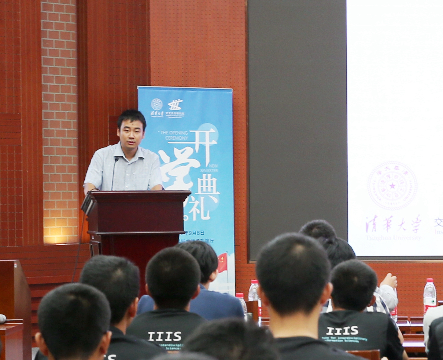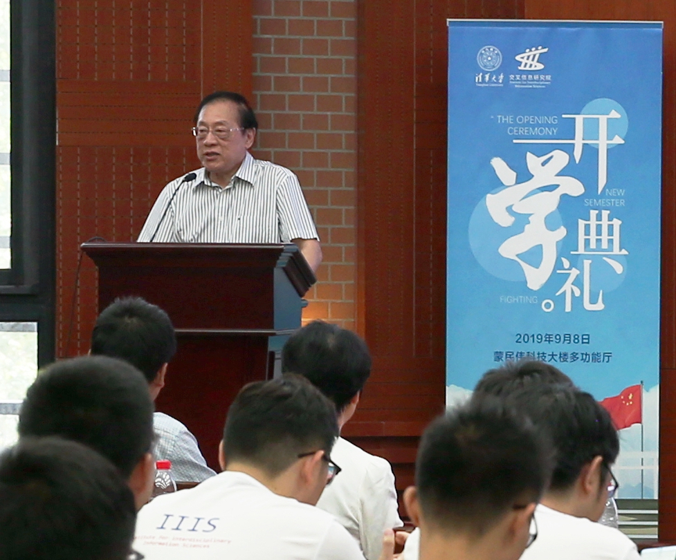 姚期智院长首先祝贺各位新生以优异的成绩考入清华,为自己过往的学业生涯提交了完美的答卷。姚先生寄语全体新生,身处于这样一个伟大的时代,充满机遇与挑战,最重要的事情要立大志、做大事,要沉下心来,戒骄戒躁,充分利用宝贵的时间去做更多有意义的事情。对于本科生,姚先生指出基础是最重要的,希望各位大一新生认真打基础;对于研究生,姚先生则希望他们尽快进入研究阶段,探索新知,并鼓励各位研究生新生先从细处着手,给自己增加信心。他表示,现在正值计算机科学的黄金时代,交叉信息院也将与各位学子一起,在交叉学科的创新舞台上努力奋进,脱颖而出,让所有的同学都成为未来时代的引领者。
