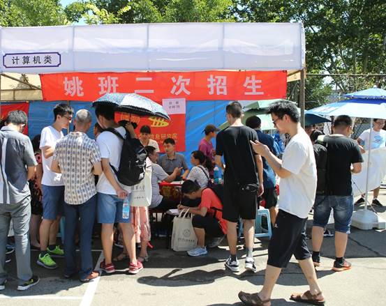8月23日,刚过早上7点,姚班迎新现场陆续迎来报到新生,与此同时二次招生也火爆拉开序幕。今年共有14位新生通过一招提前锁定姚班计科70,包括一位来自美国的国际学生。在网球场和紫荆公寓的报名现场,姚班二招受到分外关注,报名人数创历年新高。
