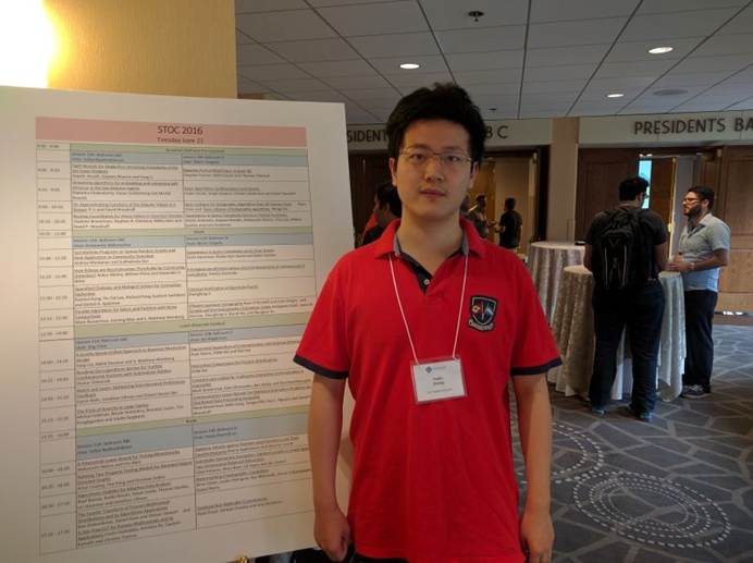 近日,清华大学交叉信息院计算机科学实验班(姚班)计科20班本科生钟沛林以第一作者身份撰写的论文《分布式模型和流模型下最优的主成分分析算法》(“Optimal Principal Component Analysis in Distributed and Streaming Models”)被计算机科学领域顶级国际会议第48届ACM计算理论年会(STOC 2016,48th Annual Symposium on the Theory of Computing,)接收,并于美国东部时间6月19日赴美作大会宣讲。这是首次有中国籍本科生在STOC会议上发表第一作者论文,即便在美国麻省理工学院、普林斯顿大学等国际一流高校本科生中也属相当难得。