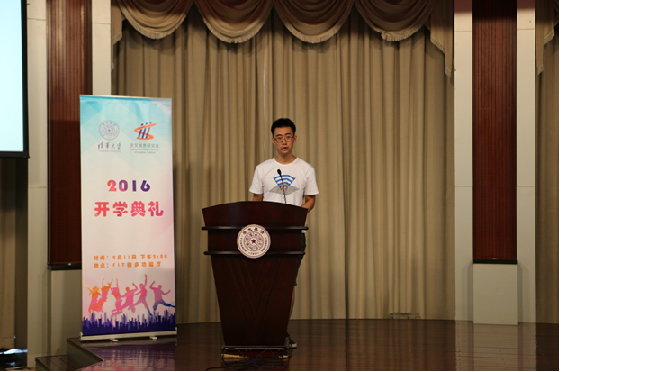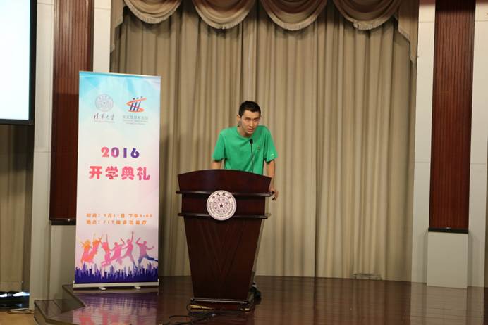 交叉研13班的淦创作为高年级同学代表,热情欢迎学弟学妹们的加入。淦创与全体新生分享了三个关键词:勤奋、理想和全面发展,鼓励新生在交叉信息院努力学习,坚持理想,成为全面发展的清华人。他相信交叉信息院学生在大有可为的黄金时期中能够强占科技制高点,不负青春梦想,不负国家期望,勇敢前行,完成人生的华丽转身。