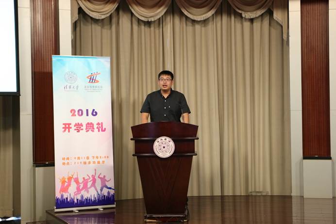 交叉信息院副教授金奇奂博士代表全体教师,向2016级新同学表示祝贺和欢迎。金奇奂老师分享了求学期间的经历与回忆。他鼓励全体新生追寻属于自己的未来,在人生中坚持独特的自己,在中国甚至世界未来科技发展中扮演重要角色。