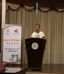 院计算机学科研究生委员会主席、助理教授李建老师代表院青年教师讲话,向全体新生表达祝贺和欢迎。志向、责任和纪律(诚信)是李建老师讲话中的关键词,也是对新生的要求和期望。李老师强调,“在学术上走所谓的捷径实际上是最大的弯路”,这对新生不仅是在未来几年本科或研究生学习生活中的启发,也将伴随其一生的学术生涯。