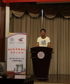 姚班新生代表、计科50班张皓辰表达了对在清华和姚班学习的憧憬——“抛弃曾经所有的荣耀,历经磨砺,变得博学,也学会谦虚”;愿与计科50班所有同学,在梦想的指引下,带着信心、毅力和勇气铸造极致的大学四年。2015级研究生谢远航代表所有研究生新生,期望自己能在学术路上渐行渐远、期望完善自我、与同学们互相激励,“做有行动力的理想主义者”。