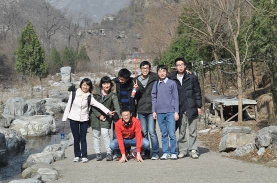 (通讯员 许梦雯)2013年3月23日早晨,交叉信息研究院的研究生和老师怀着激动的心情踏上了前往十渡的春游之路。经过了两个小时的“长途跋涉”,我们到达了目的地,下车之后,明显就能感觉到城郊空气的清新。在丰盛的午餐之后,大家前往七渡孤山寨景区游览。孤山寨位于十渡风景名胜区七渡村南,因三座孤立的山峰而得名。这次去孤山寨不仅爬了大、小孤山见识了“一线天”,还体验了京郊最长的铁索晃桥。上山容易下山难,尤其是下了一座山又上了另一座。两座山过后,大家已经是筋疲力尽。可是当回到酒店以后,舒心的晚餐又让大家精神抖擞。