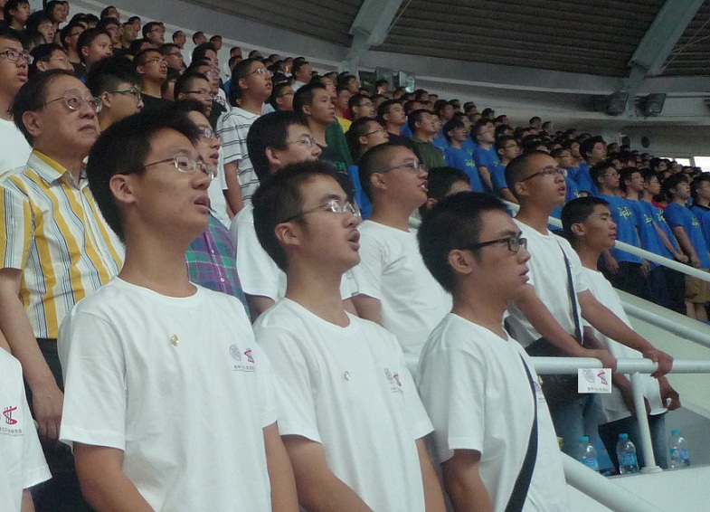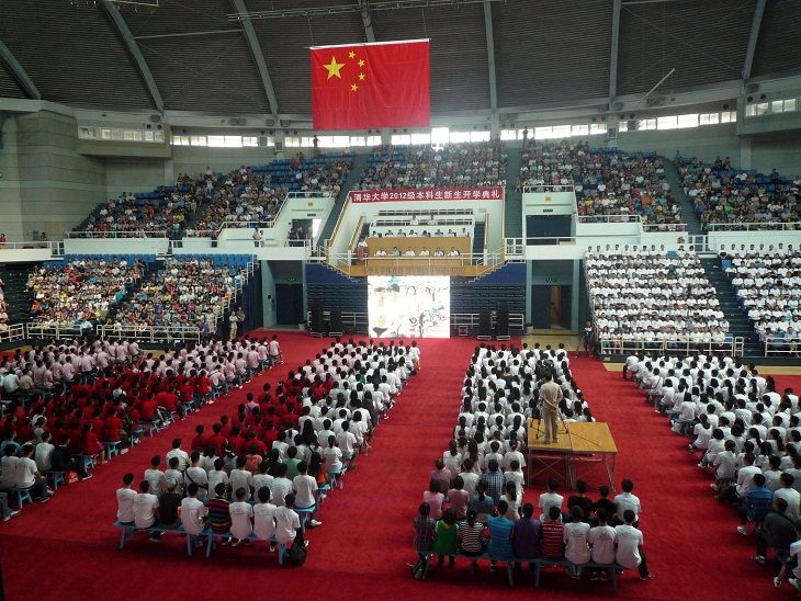 2012年8月16日上午9点,清华大学2012级本科生新生开学典礼在综合体育馆隆重举行,交叉信息院已入学报到的新同学们身着统一院衫列队入场参加开学典礼。姚班首席教授、交叉信息院院长姚期智院士与新同学们一同就座,全程参与典礼活动。当袁驷副校长宣读交叉信息研究院院长姚期智院士出席典礼时,我院同学及全场报以热烈的掌声。姚先生亲自到场并与同学们亲切交谈,给新同学们以极大的鼓舞。