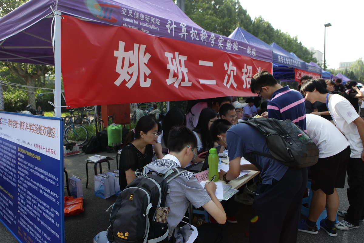 当晚,姚班二次招生迎来了报名高峰,二招宣讲会在信息技术大楼多功能厅召开,共计近150名清华新生提交了报名表。姚期智院士在宣讲会上阐述了姚班的办学目标,特别指出要为清华的优秀年轻学子提供一个得到世界最一流教育的机会,他鼓励新生踊跃尝试,争取有机会在姚班发现自己的兴趣所在和能力所长,成为建设中国、建设世界的未来主人。姚班项目主任王跃宣教授详细介绍了姚班的办学特色、人才培养成果及国际声誉,她强调计算机科学研究的是计算机的“根”的问题,希望大家积极报名进入姚班实现理想和梦想。交叉信息院副教授Kihwan Kim、助理教授Iddo Tzameret、李建和华强胜等也结合各自的研究兴趣及所开设课程做了宣讲报告,并与新生展开互动,答疑解惑。