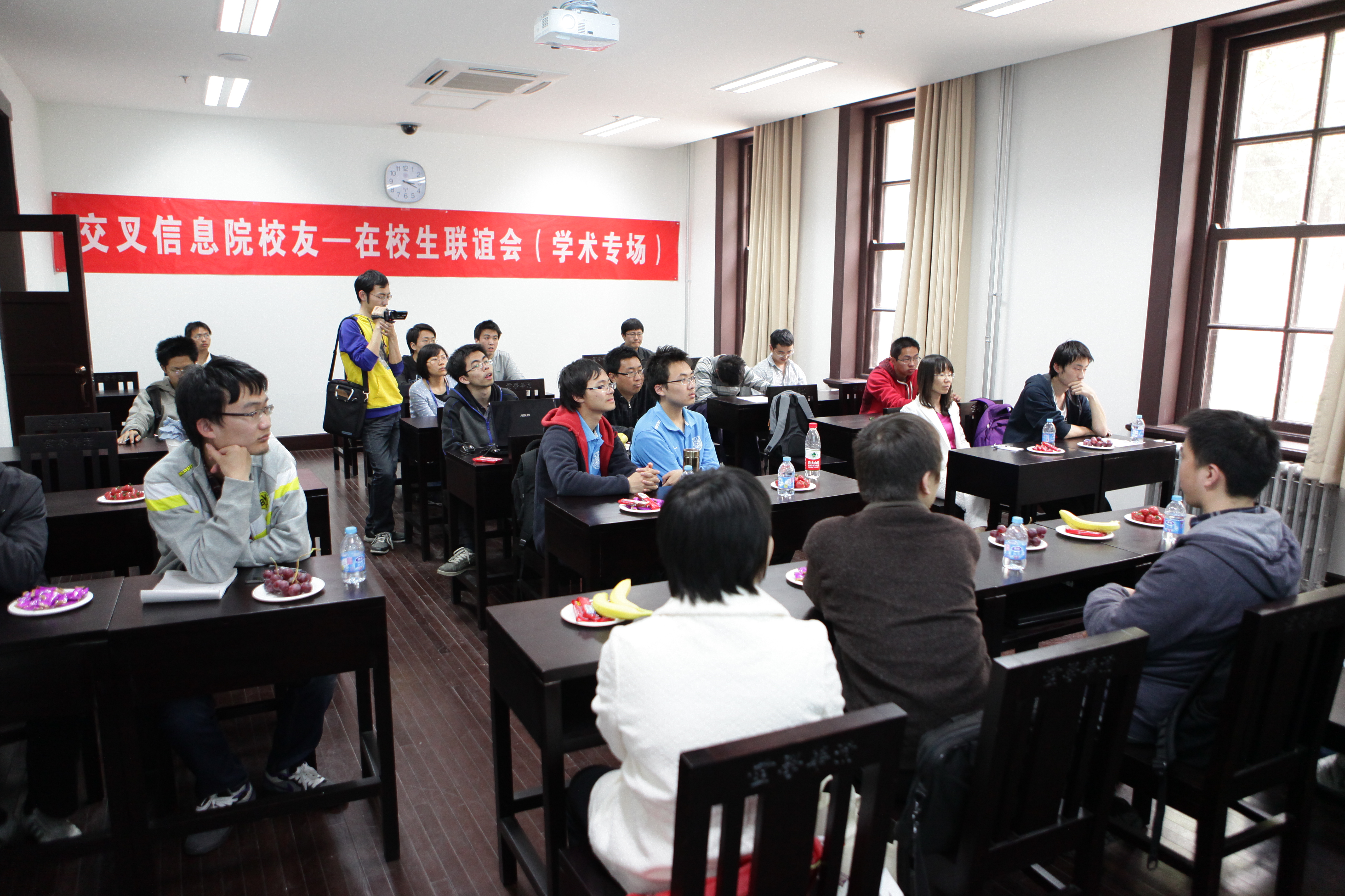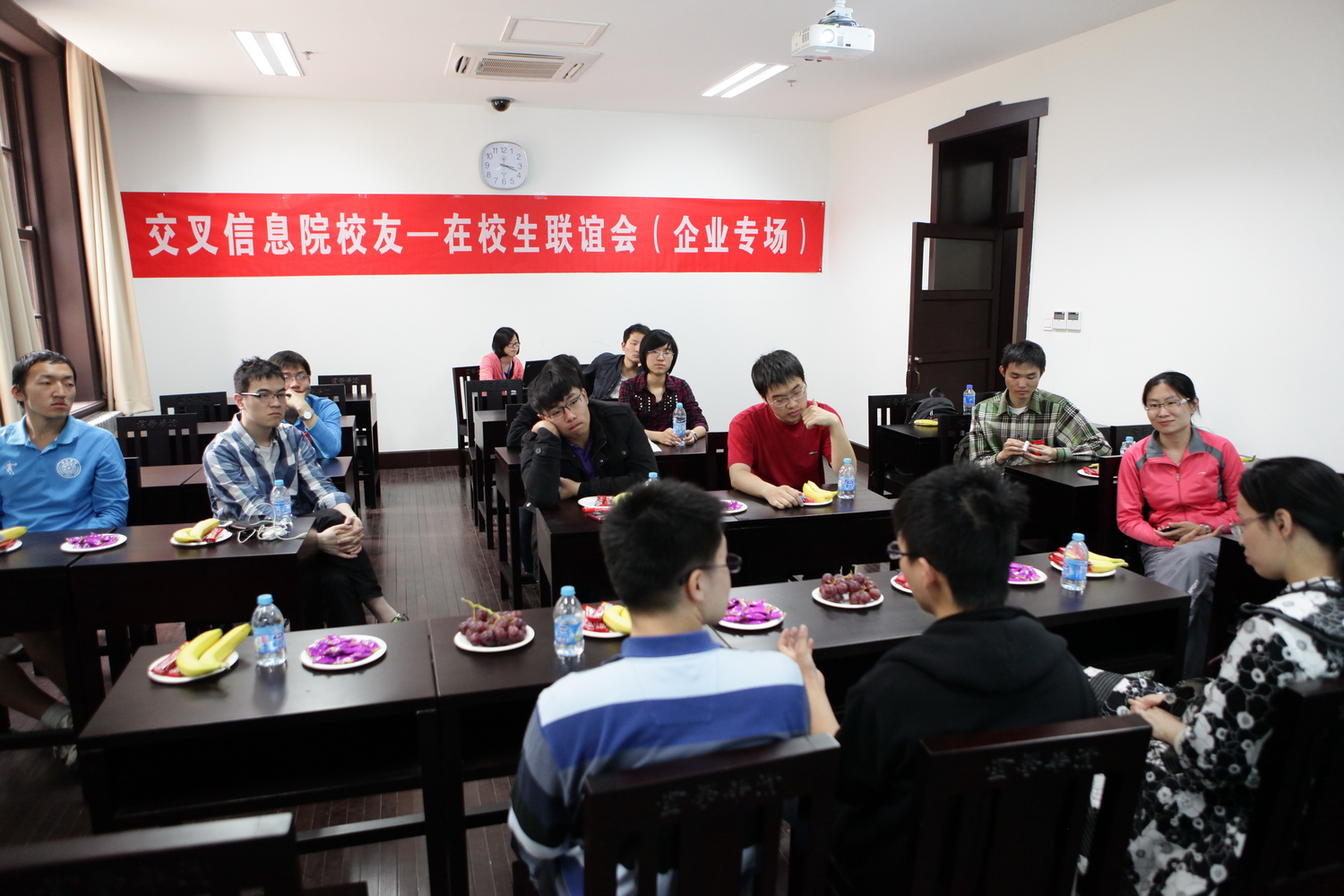 2012年4月29日,交叉信息院首次举办校庆日校友-在校生联谊会。联谊会在清华学堂112、113教室召开,分为学术专场和企业专场,邀请8名学界和业界的校友讲述求学工作成长的心路历程。交叉信息院副院长王跃宣教授等教师与院姚班学生、研究生共同参与座谈交流。