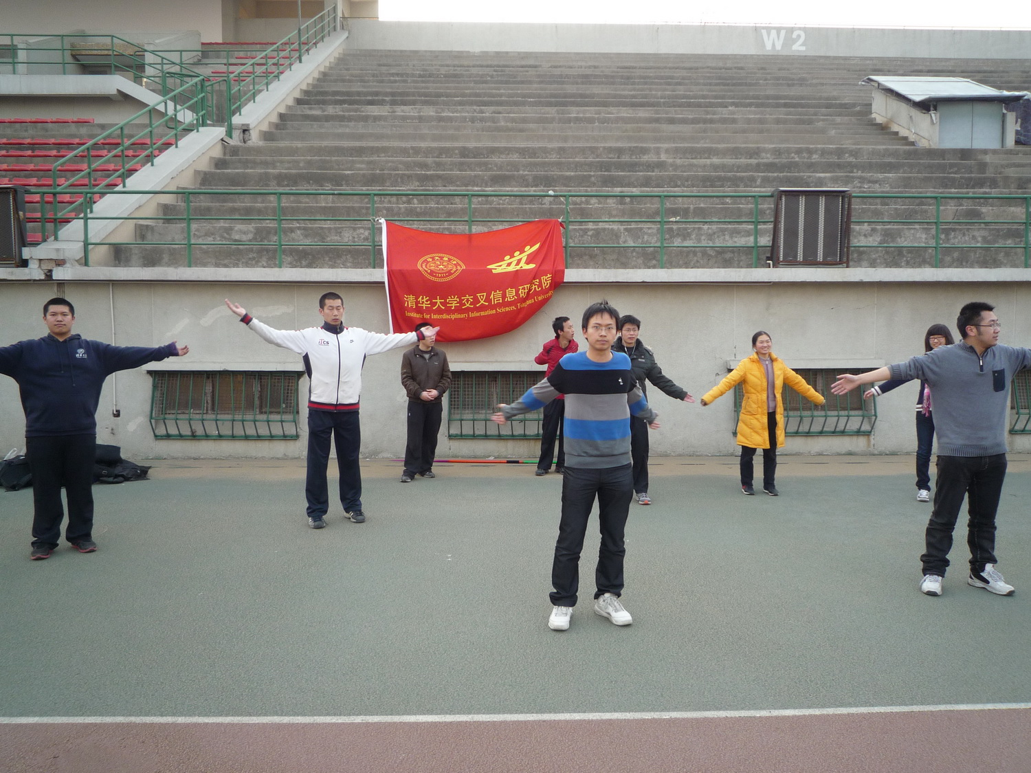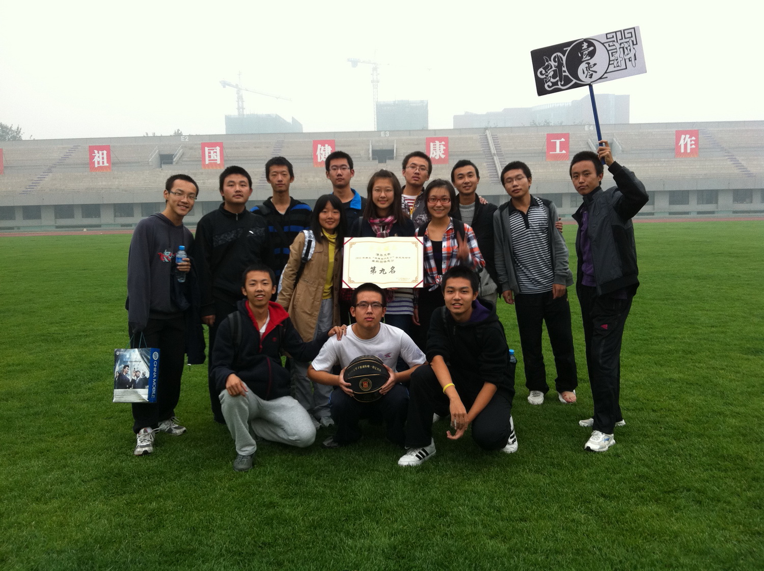 2011年10月22日,清华大学举办2011年新生“健康始于足下”赤足运动会。计算机科学实验班(姚班)计科10班与来自全校29个院系的132个大一新生班级共同参加了此次运动会。经过奋力拼搏,我院最终以班级团体总分25分位居全校132个新生班级的第9名,以班级平均分25分获得乙组班级平均分第一名,该成绩同时也是全校第一名!其中,邢鑫同学获女子4*10折返跑第1名,胡覃禾平获男子100米第2名,张宇兴获男子跳绳第4名,拔河获得第5名。
