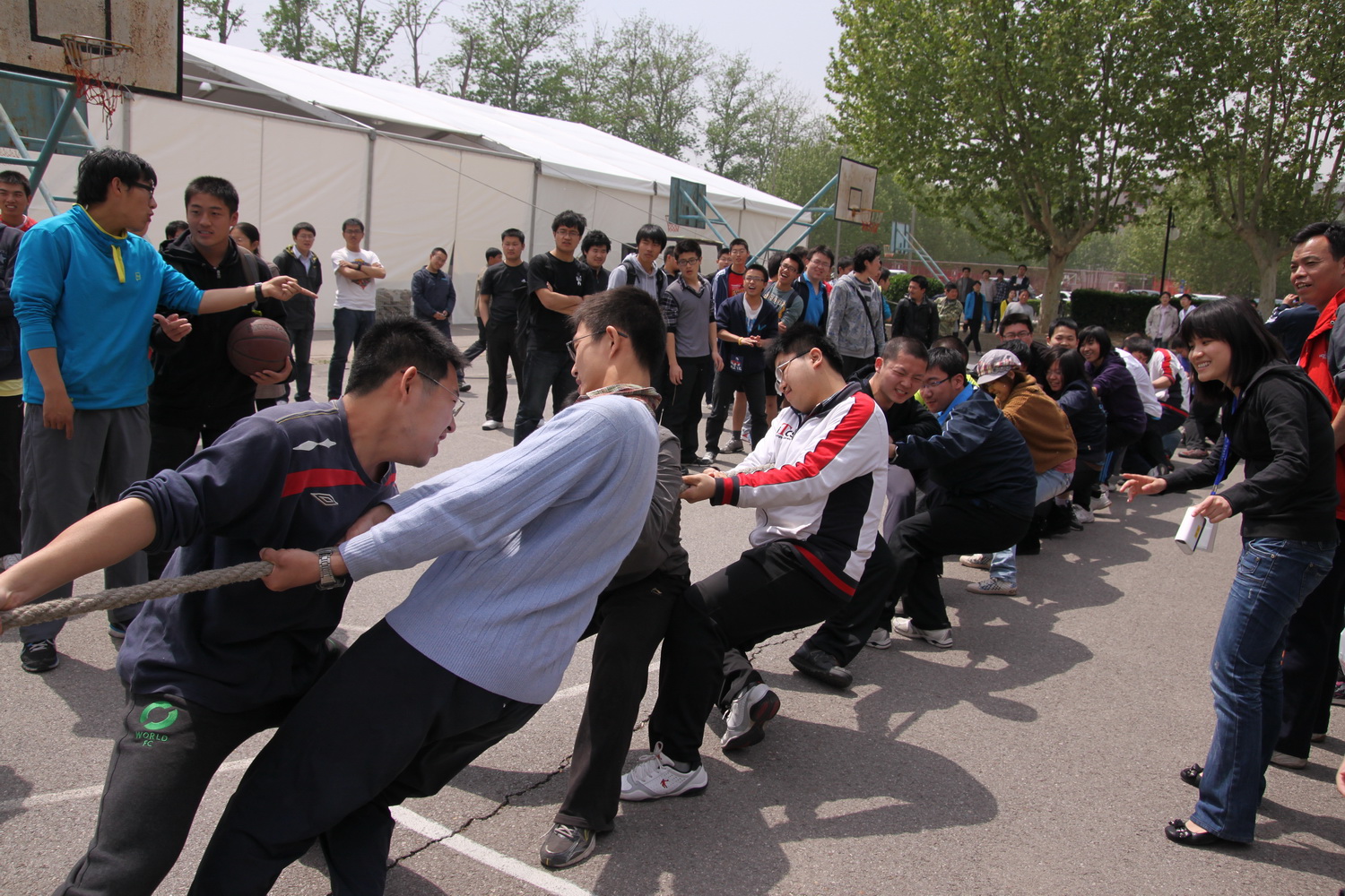 参加拔河比赛决赛的同学们